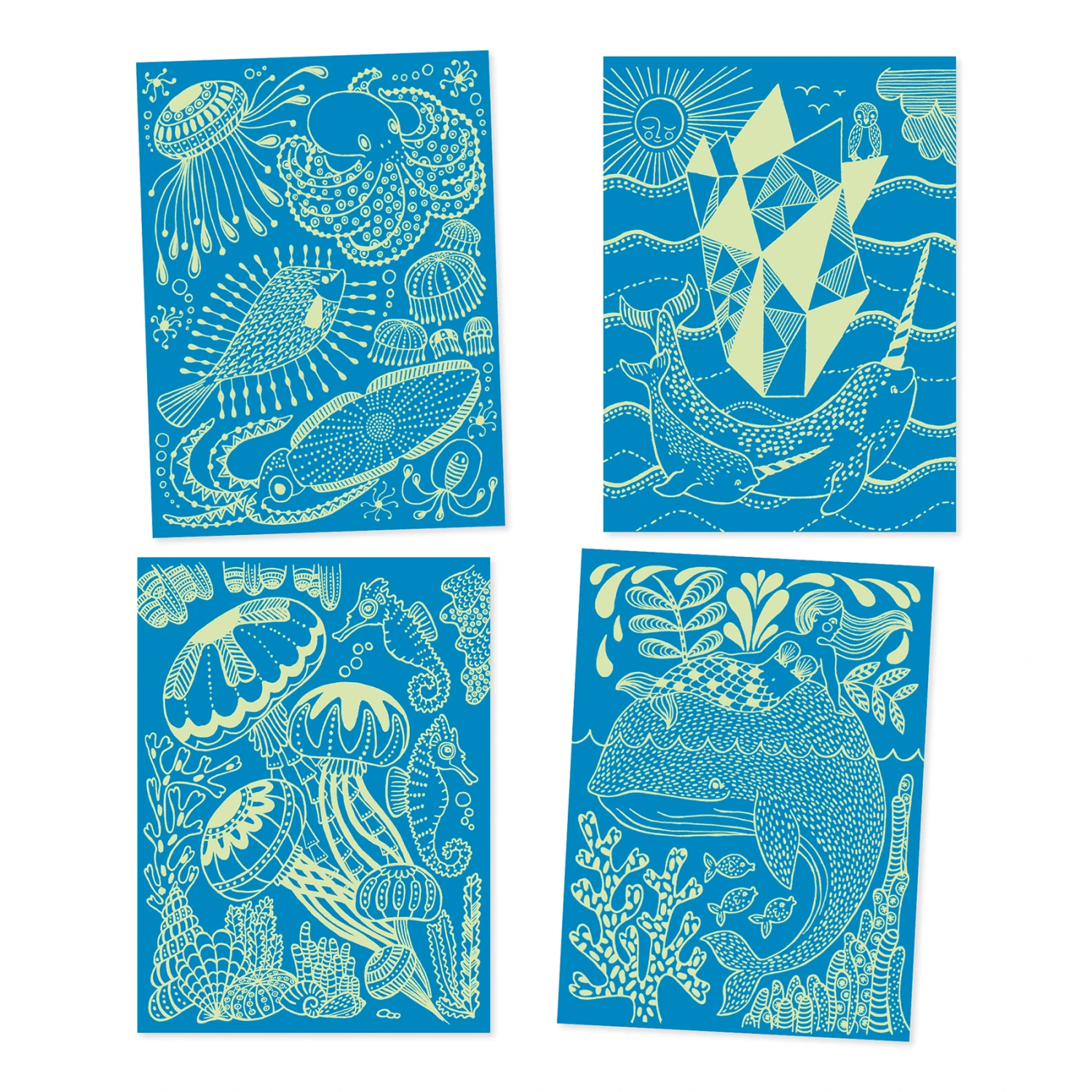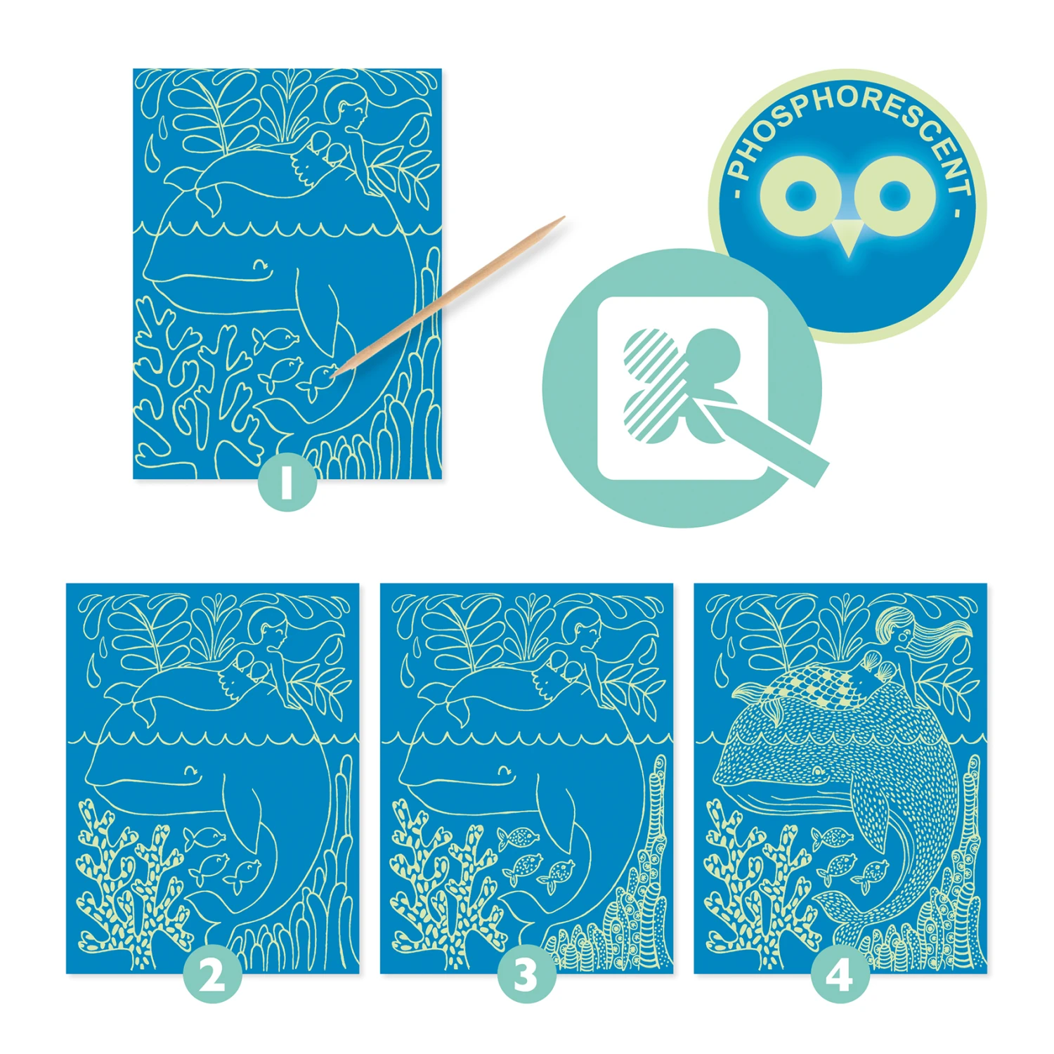 Djeco Kraskaarten Zeeleven Glow-in-the-Dark