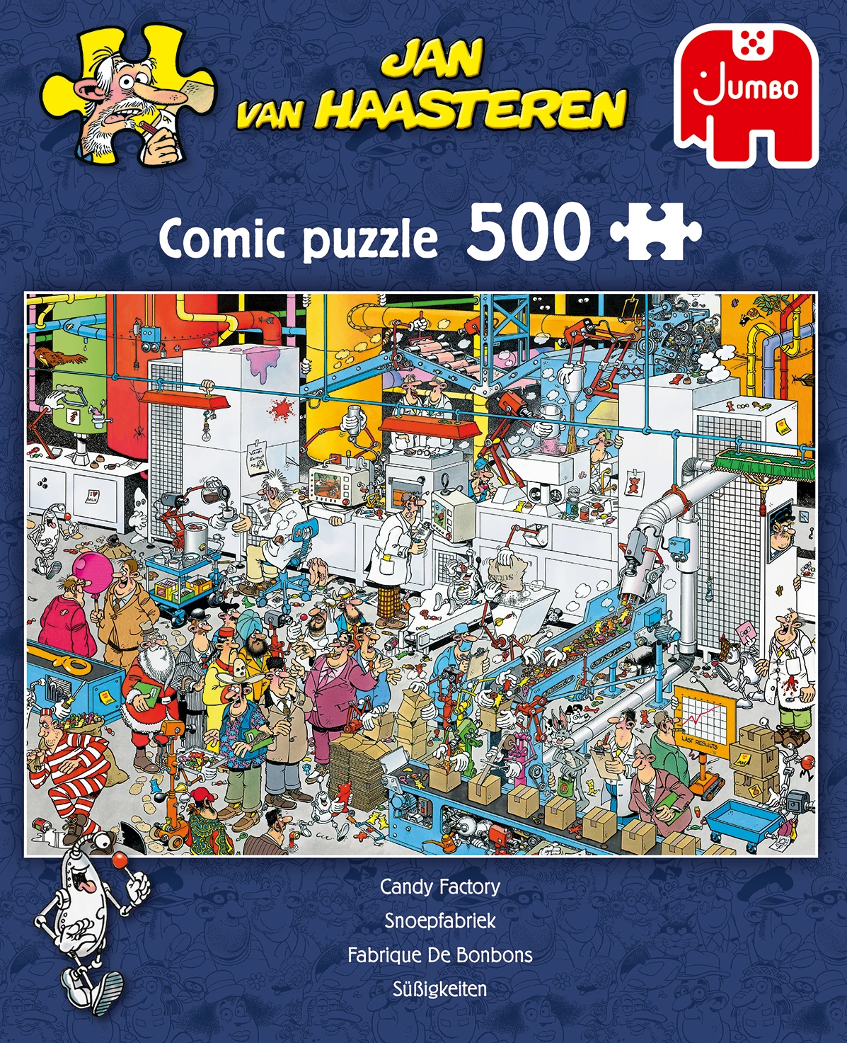 Jan van Haasteren Snoepfabriek 500 stukjes. Soort: Legpuzzel. Aantal puzzles: 500 stuk(s). Genre: Humor, Doelpubliek: Volwassenen, Aanbevolen geslacht: Jongen/meisje, Aanbevolen leeftijd (min): 12 jaar, Aanbevolen leeftijd (max): 99 jaar. Breedte: 490 mm, Hoogte: 350 mm