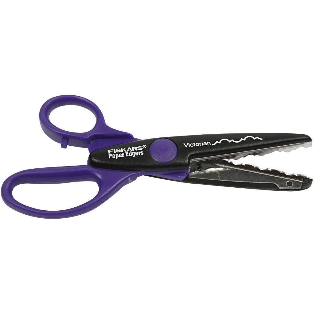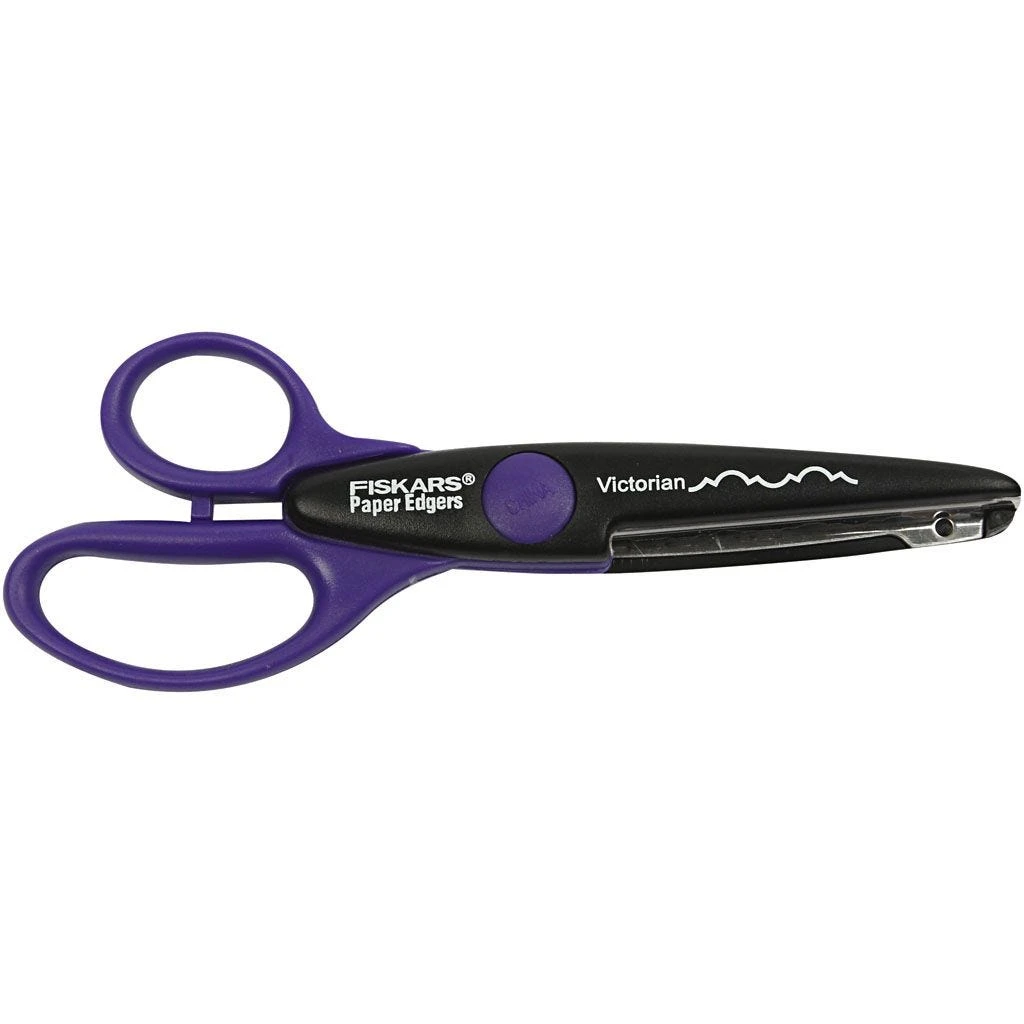 Fiskars decoratieve kartelschaar in roestvrij staal – knipt o.a. papier, karton, schuimplastic, dunne metaalfolie foam etc – zowel rechts als linkshandig.
