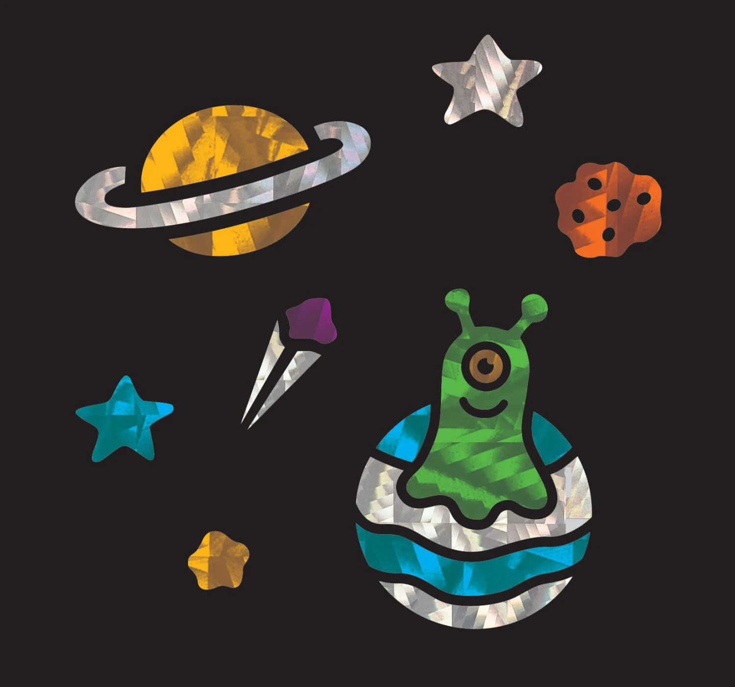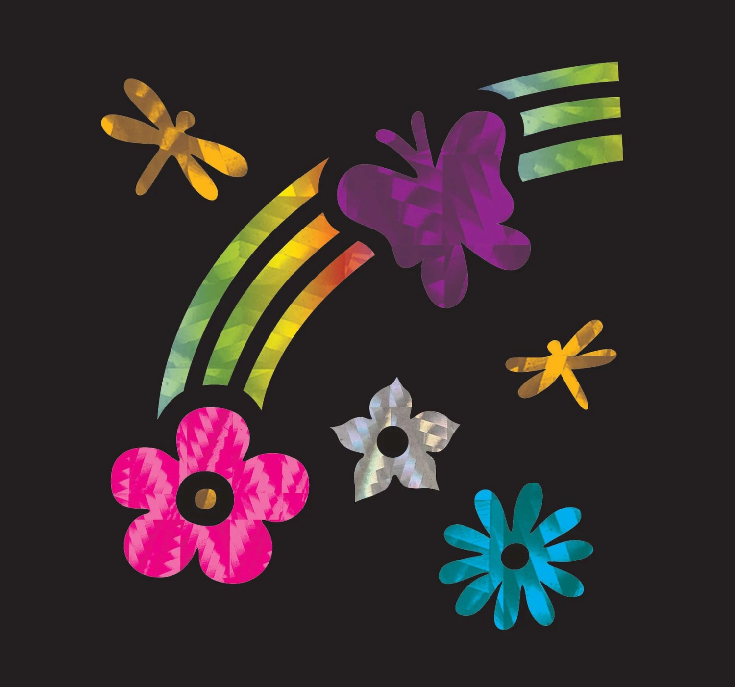 Gewoon een deel van de afbeelding afpellen, de folie over het kleverige gebied platsen en wrijven met je vinger. Til het folie vel op en de sprankelende folie kleeft op de foto.