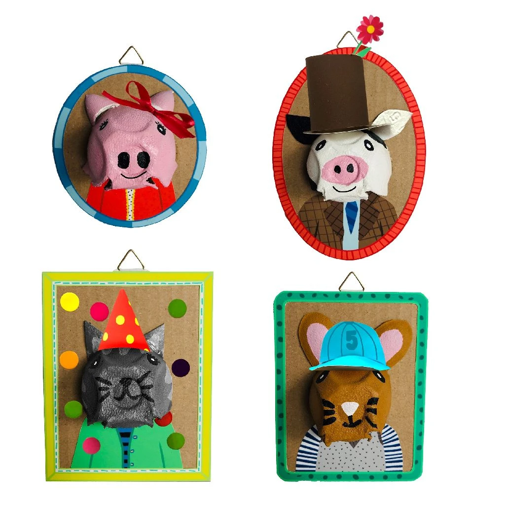 Re-Cycle-Me gelooft in een wereld waarin kinderen en hun ouders zich meer bewust worden van de hoeveelheid afval die we allemaal produceren. Kinderen kunnen helpen dit te verminderen door te recyclen! Met deze leuke kit kun je 4 dierenportretten maken om aan je muur te hangen. Het enige dat je uit je eigen kast nodig hebt is lijm, een schaar, karton en een eierdoos. Inhoud van de verpakking: papier, stickers, verf met kwast, lint, plakhaken en een handleiding. Wordt geleverd in full-colour doos. Geschikt voor kinderen vanaf 4 jaar.