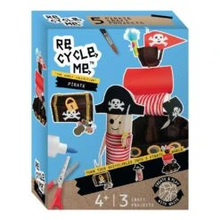 Re-Cycle-Me gelooft in een wereld waarin kinderen en hun ouders zich meer bewust worden van de hoeveelheid afval die we allemaal produceren. Kinderen kunnen helpen dit te verminderen door te recyclen! Met deze doos kun je 3 projecten met piratenthema maken. Ga de schat zoeken! Het enige dat je uit je eigen kast nodig hebt is lijm, schaar, eierdoos en een wc-rolletje. Inhoud van de verpakking: papier, stickers, verf met kwast, lint, een veer, houten stokjes en een handleiding. Wordt geleverd in full-colour doos. Geschikt voor kinderen vanaf 4 jaar.
