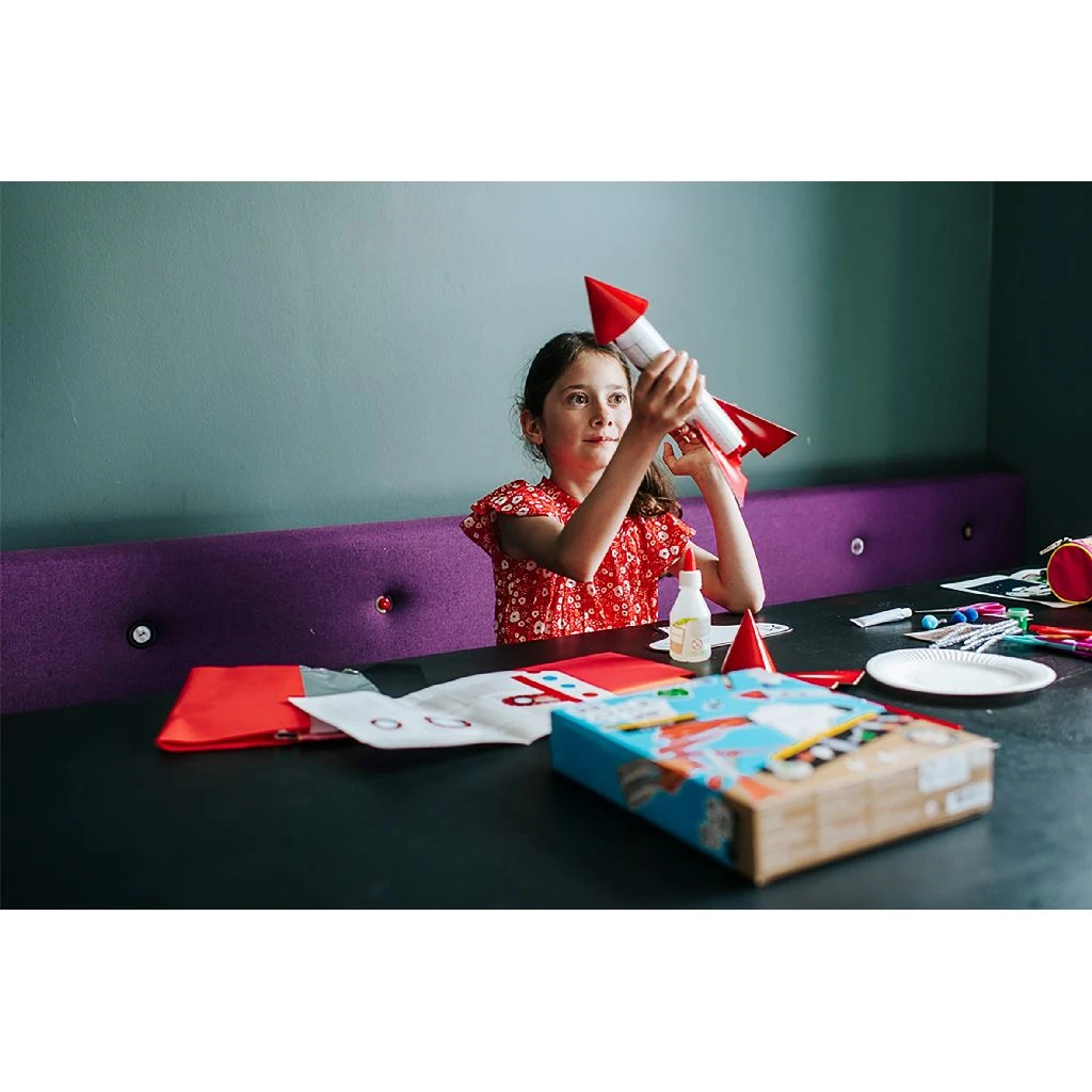 Re-Cycle-Me Space World. Re-Cycle-Me gelooft in een wereld waarin kinderen en hun ouders zich meer bewust worden van de hoeveelheid afval die we allemaal produceren. Kinderen kunnen helpen dit te verminderen door te recyclen! Met deze doos kun je 3 verschillende ruimteschepen, een alien, een astronaut en een UFO maken. Het enige dat je uit je eigen kast nodig hebt is lijm, een schaar, een wc- en keukenrol, eierdozen en een PET-fles.